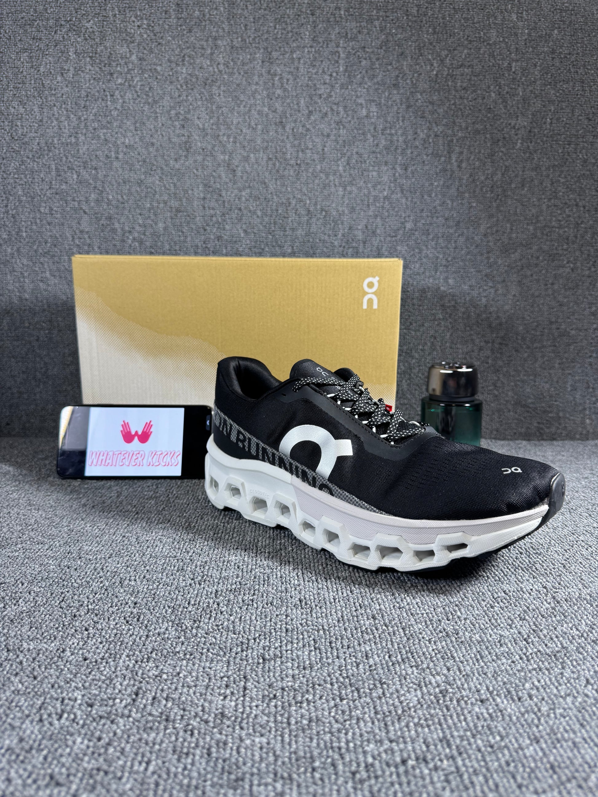 On Cloudmonster 2 running shoes in black and white